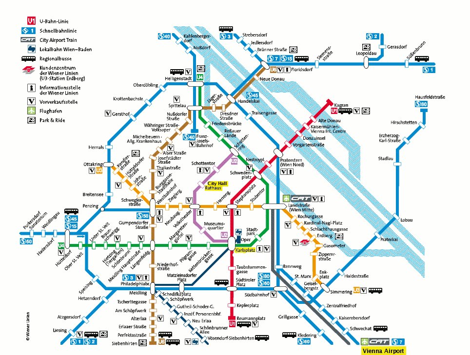 Find a map of the railway system of Vienna here. Map of the railway network system in Vienna